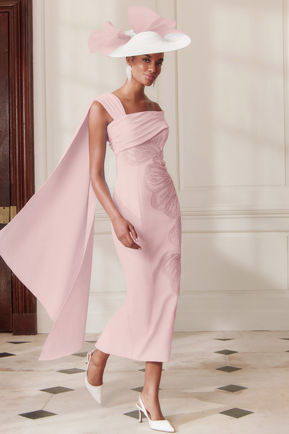 John Charles straight midi dress with asymmetrical cape